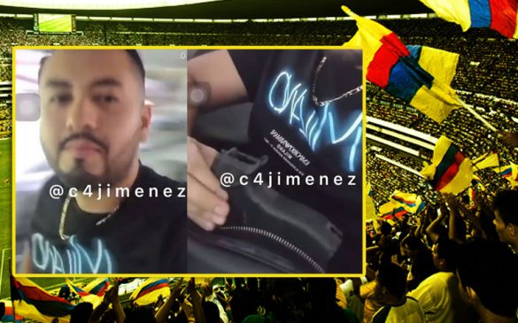 En el Twitter @c4Jiménez, se ve la imagen de este personaje, abriendo una mochila para mostrar un arma y anunciar que quería hacer daños a los aficionados a las Águilas: “Al chicle voy a ‘chicotear’ a quien le vaya al América”, dijo mientras sus acompañantes, algunos de ellos americanistas, reían. “Al chile voy a matar a algunos americanistas”, repitió mientras estaba sentado en uno de los palcos del inmueble.