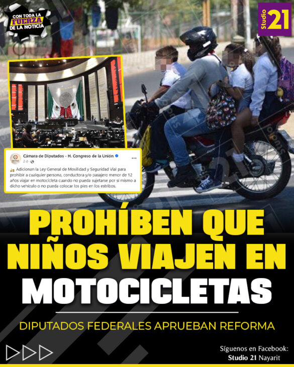 Con 409 votos a favor, 25 en contra y cero abstenciones La Cámara de Diputados reformó la Ley General de Movilidad y Seguridad Vial para prohibir a los menores se 12 años conducir o ser pasajero en motocicletas cuando no puedan sujetarse adecuadamente al vehículo o cuando no puedan colocar sus pies de forma segura.
