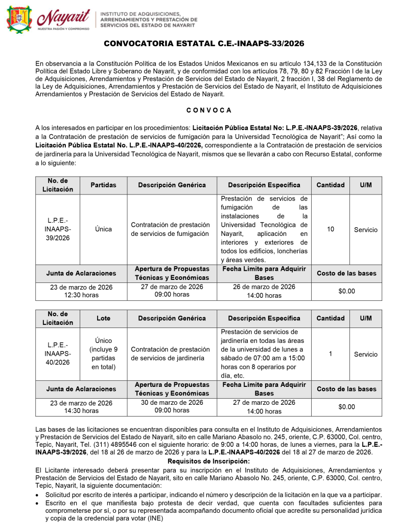 NayaritPolítica CONVOCATORIA C.E.-INAAPS-33-2026 by Héctor Guzmán marzo 18, 2026 by Héctor Guzmán marzo 18, 2026 18 CONVOCATORIA C.E.-INAAPS-33-2026 CONVOCATORIA C.E.-INAAPS-33-2026Descarga CONVOCATORIA C.E.-INAAPS-33-2026 0 comment 0 FacebookTwitterWhatsappTelegramEmail Héctor Guzmán previous post La doctora Beatriz Estrada Martínez, presidenta del Sistema DIF Nayarit, llevó bienestar a niñas y niños de Huaynamota, en el municipio de San Blas, con la ampliación del desayunador del preescolar Gregorio Torres Quintero. next post CONVOCATORIA C.E.-INAAPS-33-2026 Artículos relacionados La doctora Beatriz Estrada Martínez, presidenta del Sistema... marzo 18, 2026 Inicia Miguel Ángel Navarro entrega de viviendas como... marzo 18, 2026 Reconoce Miguel Ángel Navarro trabajo del DIF Nayarit... marzo 18, 2026 Leave a Comment Cancel Reply Save my name, email, and website in this browser for the next time I comment.