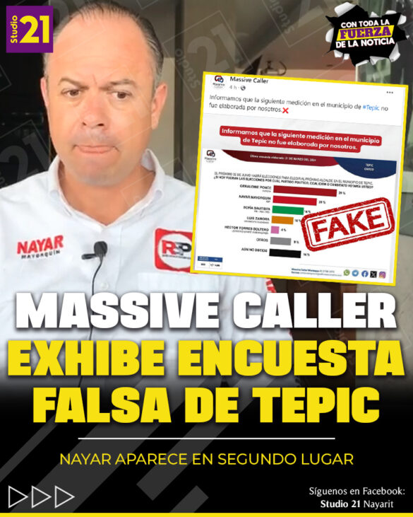 La empresa encuestadora Massive Caller informó el día de hoy, que es falsa la encuesta que se difunde en redes sociales sobre la contienda electoral a la alcaldía de Tepic.
