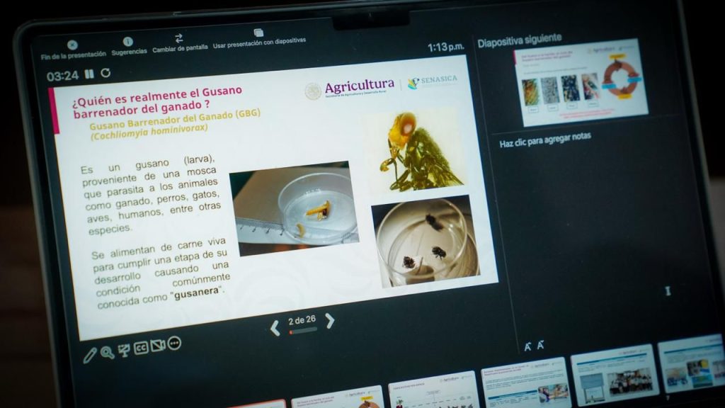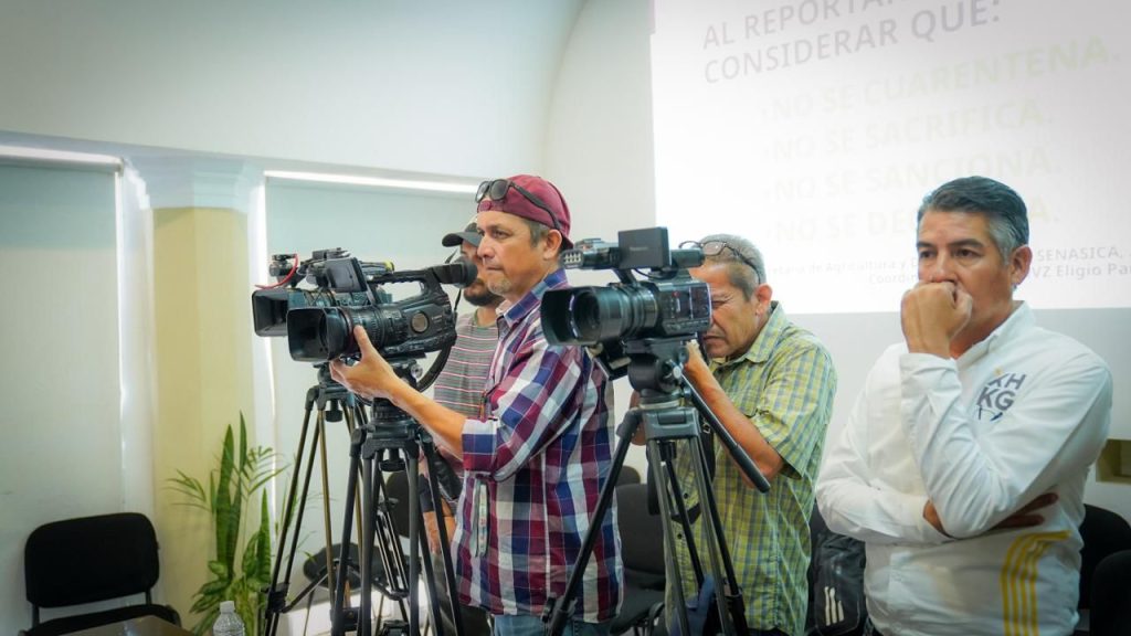 La secretaria general de Gobierno, Rocío Esther González García, encabezó una conferencia de prensa, para informar sobre la detección de un segundo caso de gusano barrenador en la entidad, por lo que se fortalecen las acciones preventivas y de atención en coordinación con autoridades federales, a fin de dar seguimiento puntual a esta situación, con el objetivo de proteger la salud animal y prevenir afectaciones mayores.
