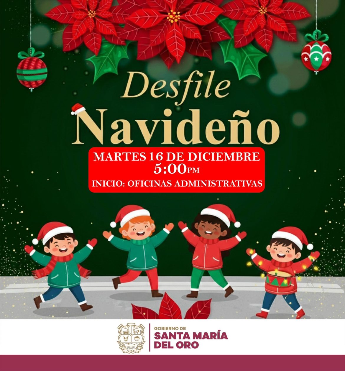 El H. XLIII Ayuntamiento de Santa María del Oro invita a todas las familias del municipio a disfrutar del Desfile Navideño 2025, un recorrido lleno de color, alegría y espíritu decembrino.