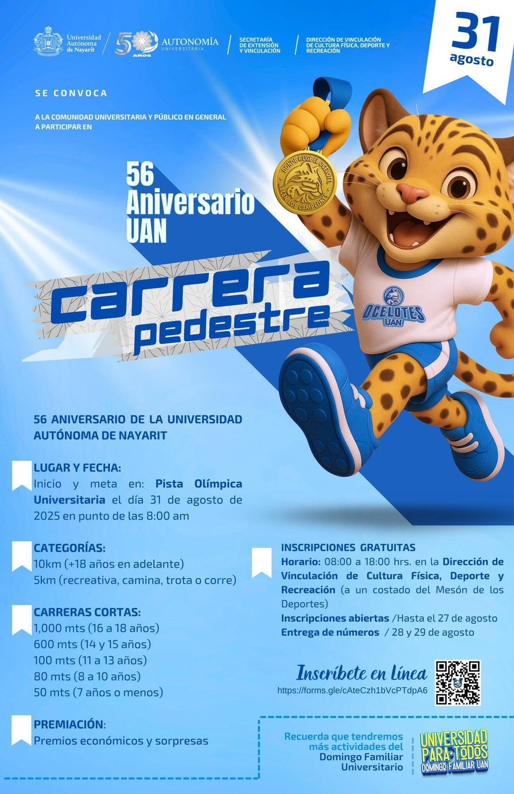☝🏽🤓Recuerda que en el marco del 56 aniversario de la Universidad Autónoma de Nayarit, te invitamos a participar en la Carrera Pedestre UAN 2025, una jornada llena de energía, identidad y orgullo universitario.🤩